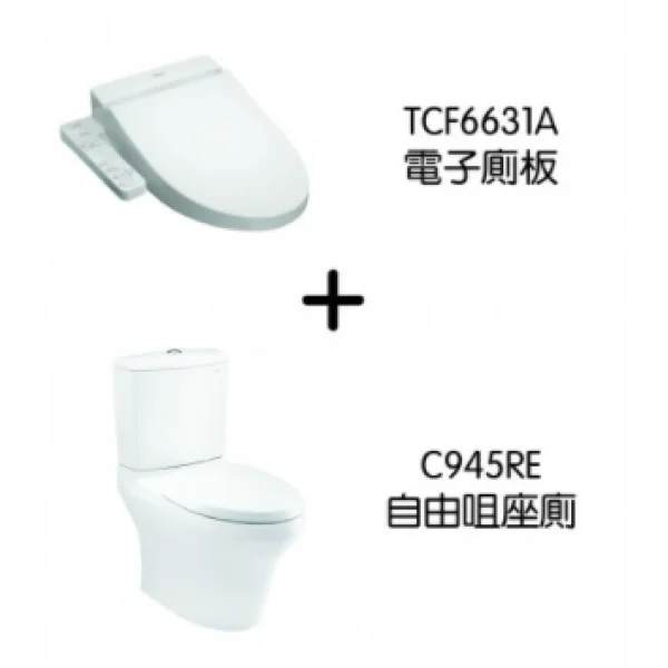 套裝包括: TOTO分體式自由咀座廁(C945RE) 電子廁板(TCF6631A)