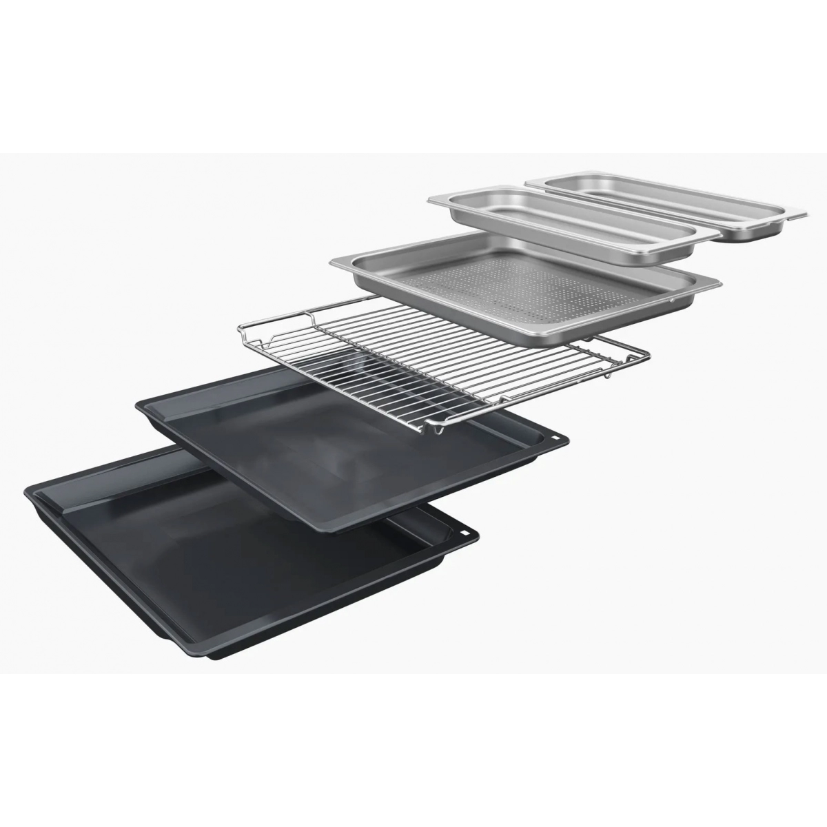 淺烤盤, 中深帶孔蒸盤, 大深帶孔蒸盤, 中深實心蒸盤, 烤架, 萬用烤盤