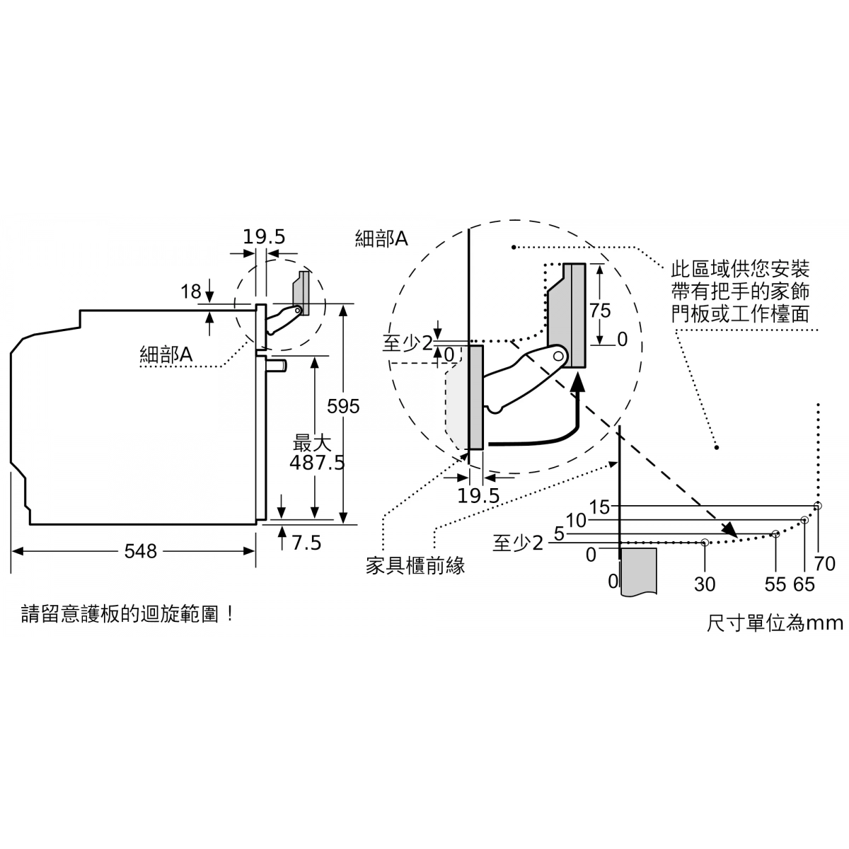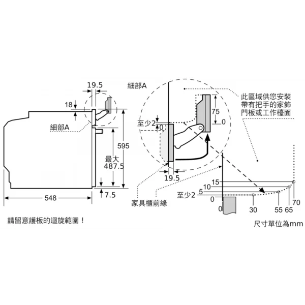 開孔尺寸: 高 585 mm X 闊 560 mm X 深 550 mm