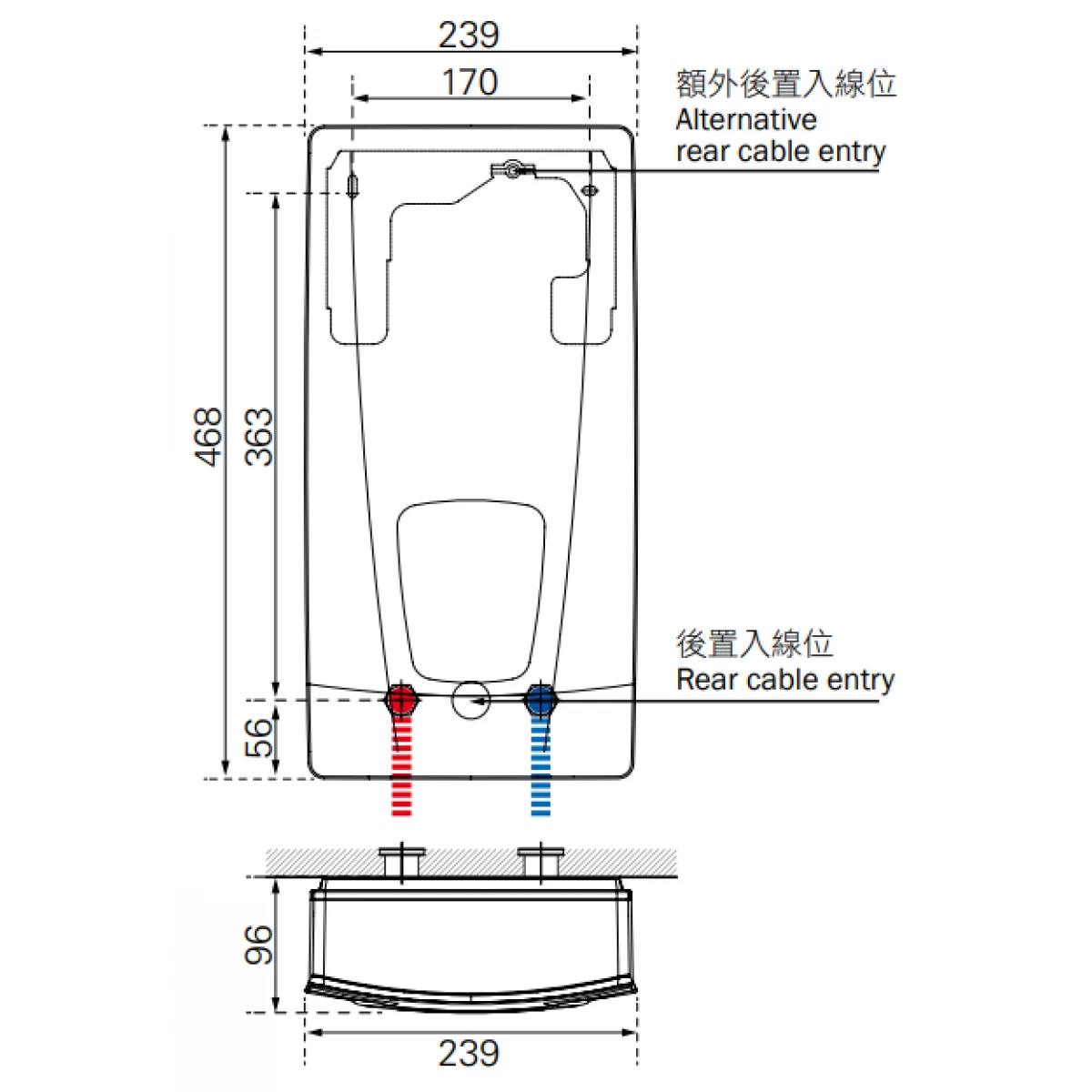 尺寸 (H) 468 (W) 239 (D) 96 mm
