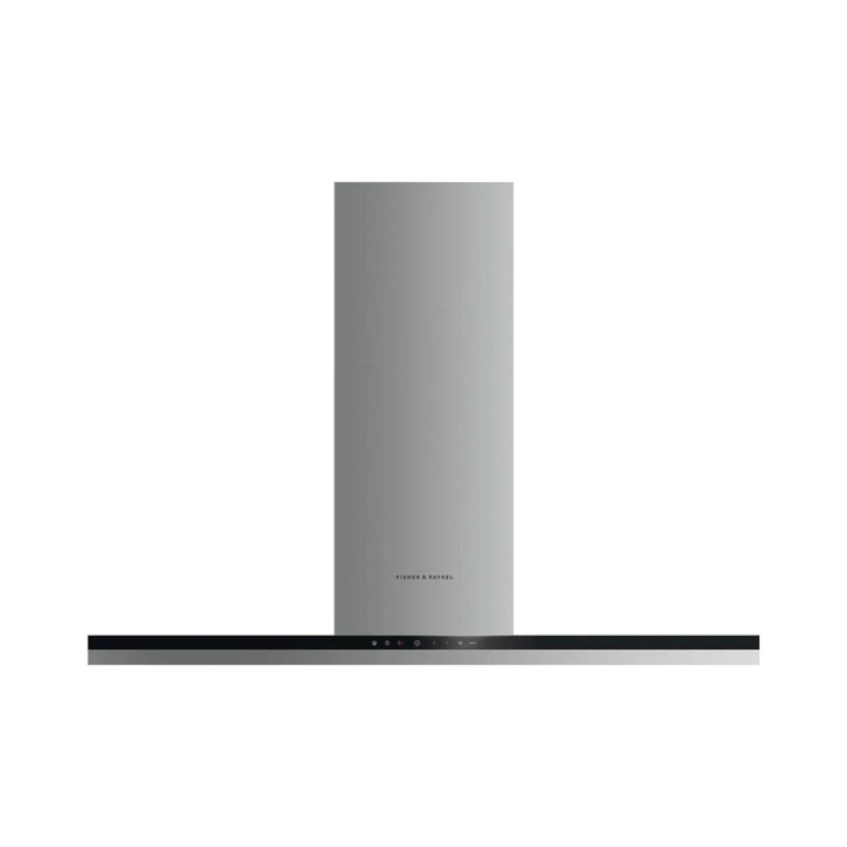 This wall chimney rangehood features sleek black glass and stainless steel styling that will complement any contemporary kitchen, and is designed to match the rest of Fisher & Paykel’s kitchen appliance family.
