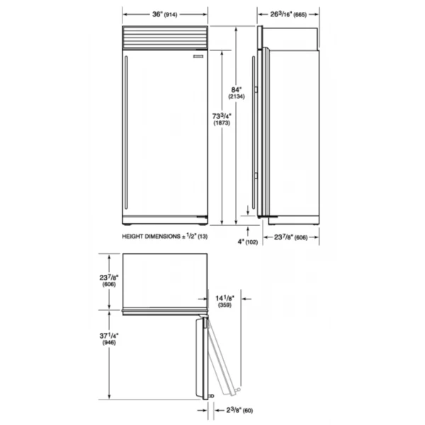 尺寸: 914毫⽶(寬) x 2134毫⽶(⾼) x 610毫⽶(深)