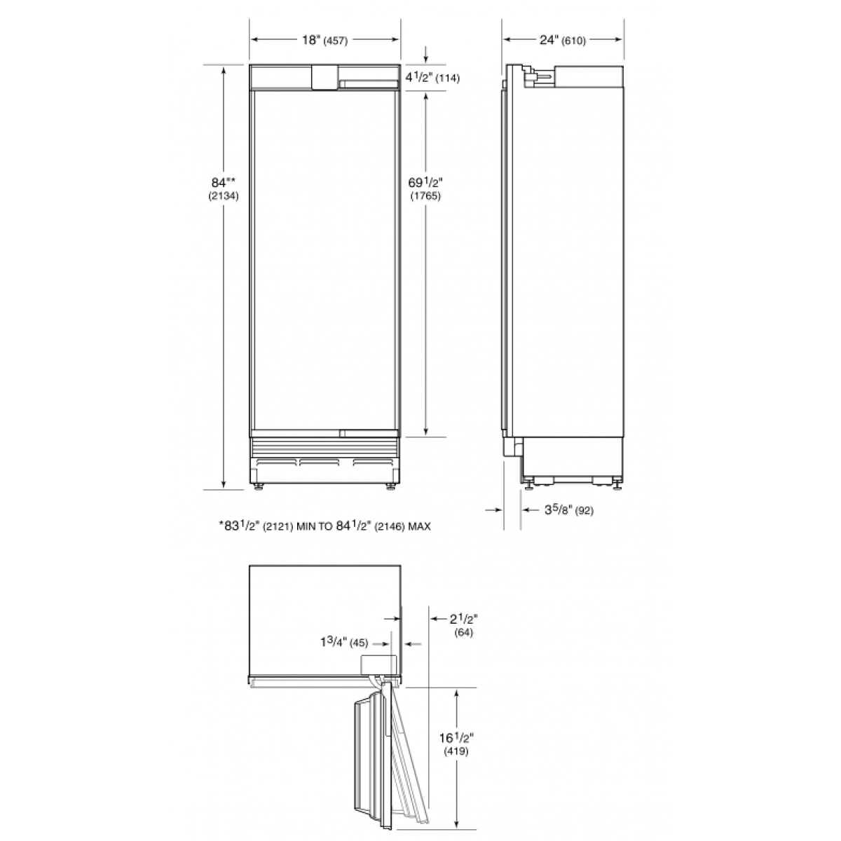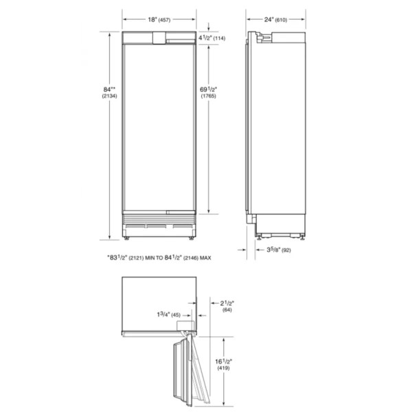 尺寸 457 毫米寬 x 2134 毫米高 x 610 毫米深