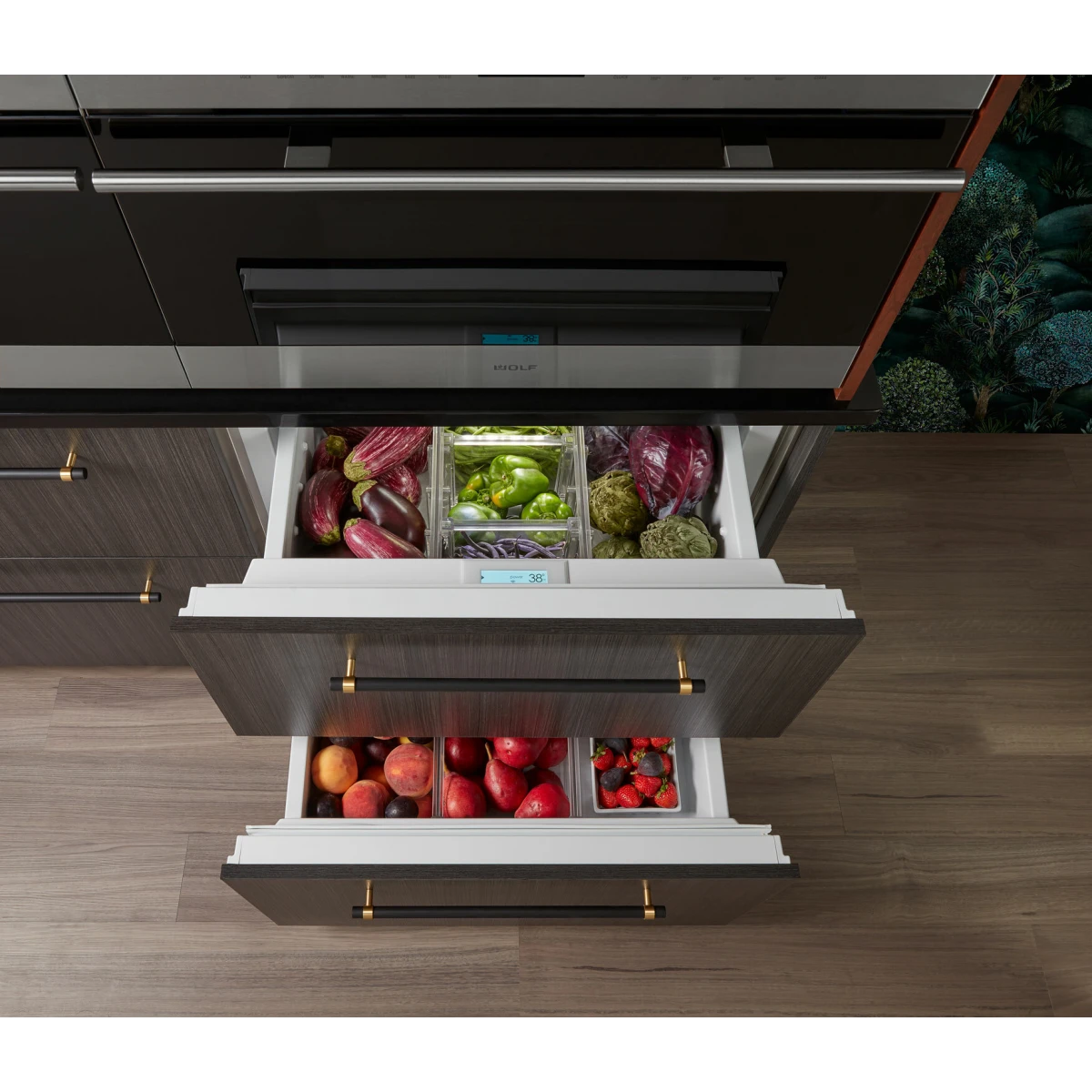 接受定制面板以在櫥櫃或不銹鋼配件面板和把手中實現集成外觀,以匹配其他 Sub-Zero 和 Wolf 產品