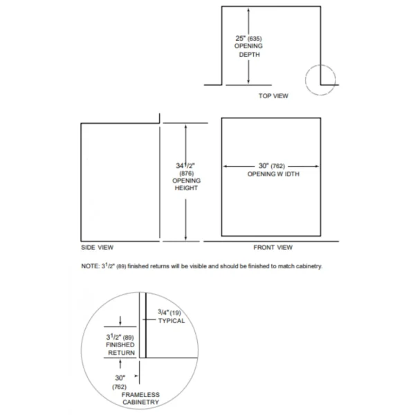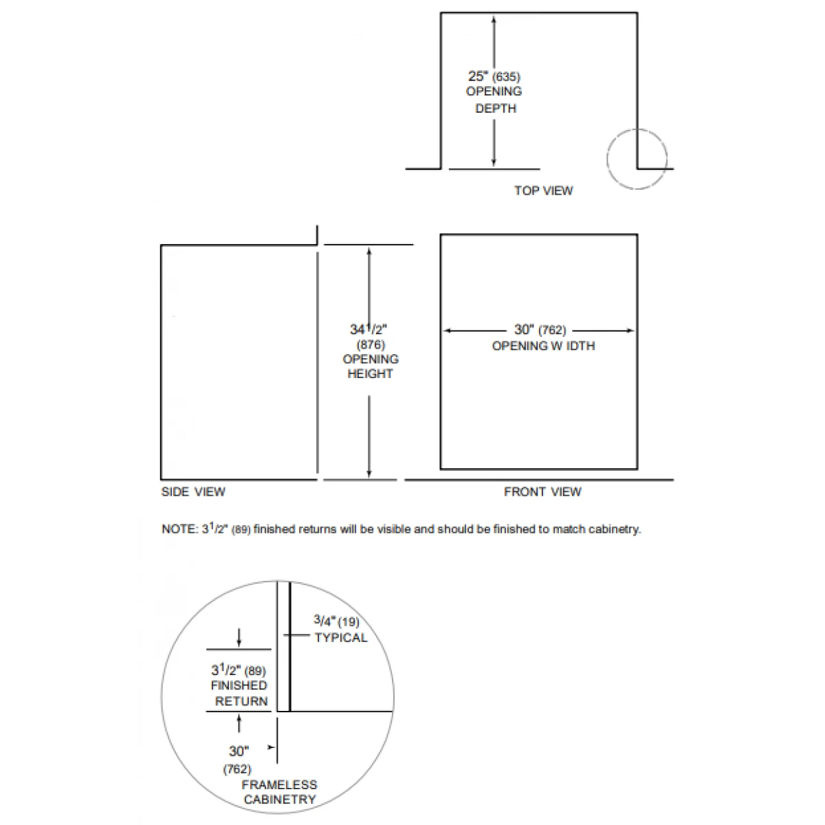 開孔尺寸: 高 876 mm X 闊 762 mm X 深 635 mm
