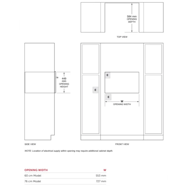開孔尺寸: 高 449 mm X 闊 727 mm X 深 584 mm